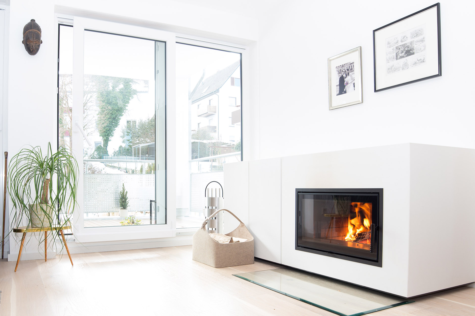 Kamin auf Holzboden