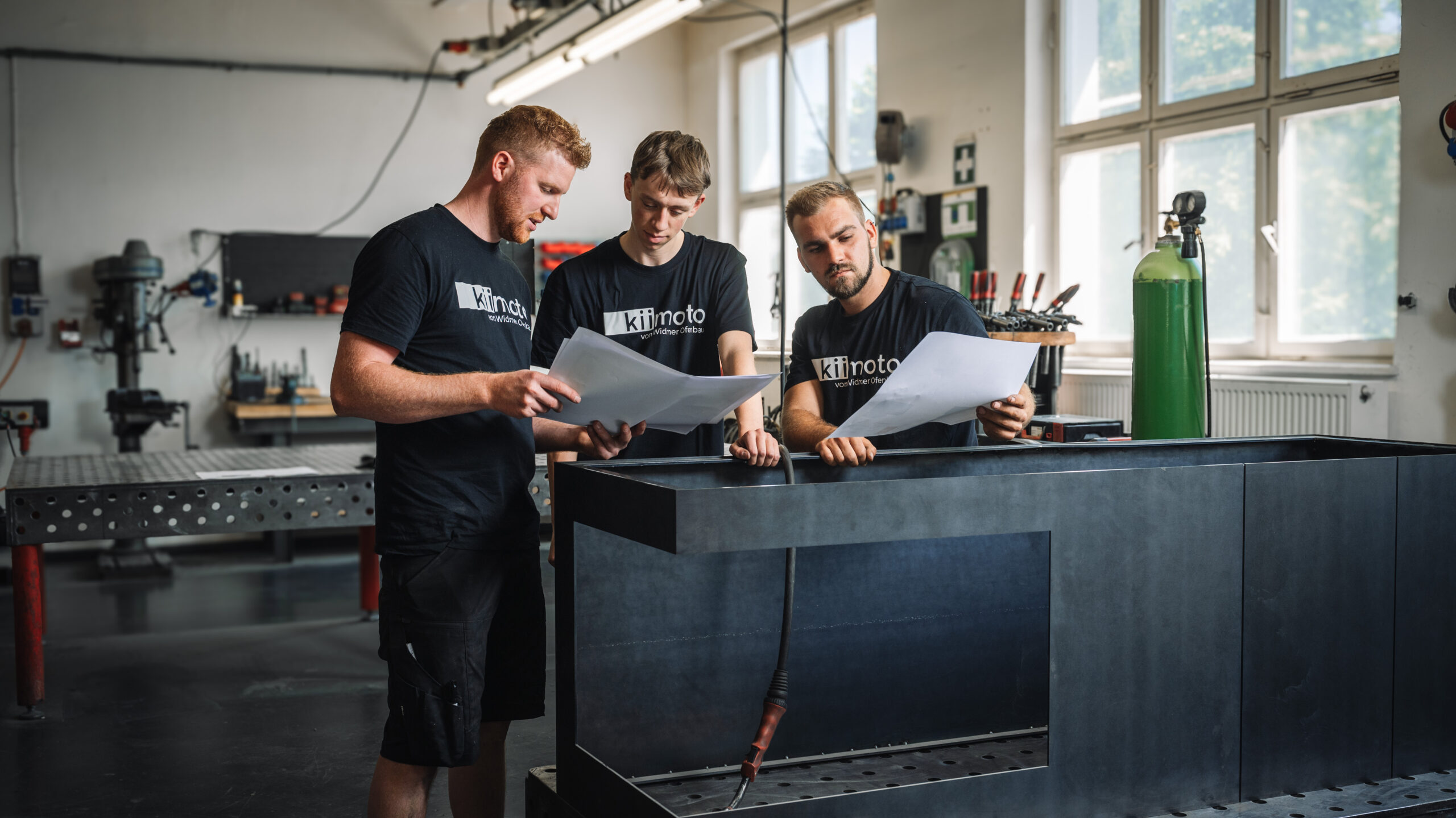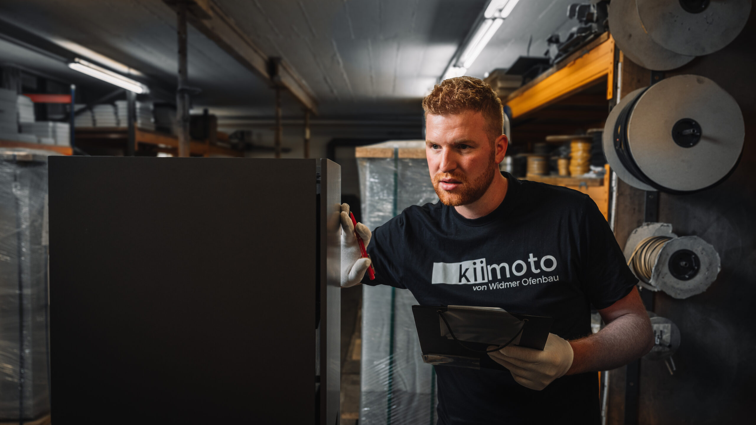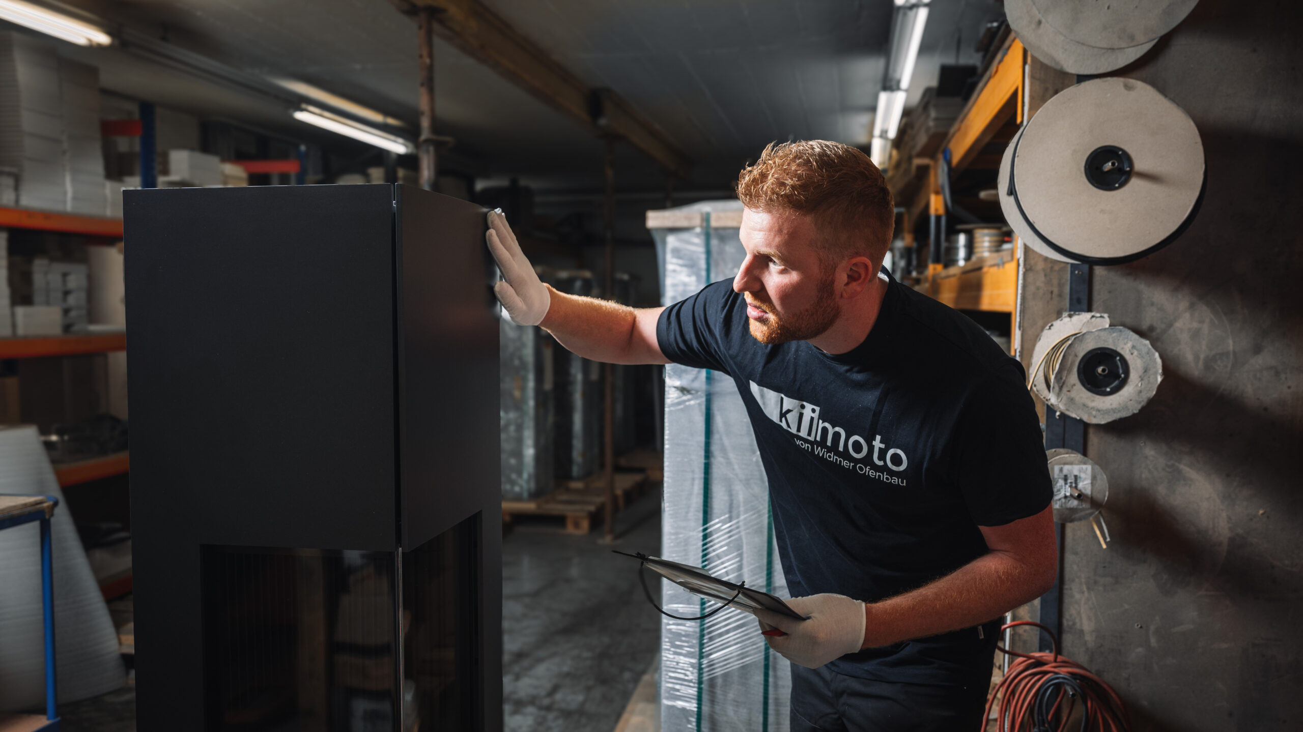 Seit 10 Jahren ist Peter das handwerkliche Rückgrat der Kiimoto-Manufaktur. Wenn er die massiven Speichersteine setzt oder den Stahl für unsere Kamine bearbeitet, sitzt jeder Handgriff blind. Für ihn ist ein Kiimoto nicht einfach nur ein Ofen, sondern eine Skulptur, die Leben in einen Raum bringt. Es ist seine absolute Hingabe an die Millimeterarbeit – das perfekte, unsichtbare Innenleben, das unsere Speicherkamine später so einzigartig wärmen lässt –, die seine Arbeit zu wahrem Luxus macht. Und obwohl er den ganzen Tag mit Feuer, Stahl und schwerem Material hantiert, ist Peter der Erste, der morgens in aller Ruhe sein Arbeitsplatz vorbereitet. Ein Meister der leisen Töne, dessen Kamine für sich selbst sprechen.